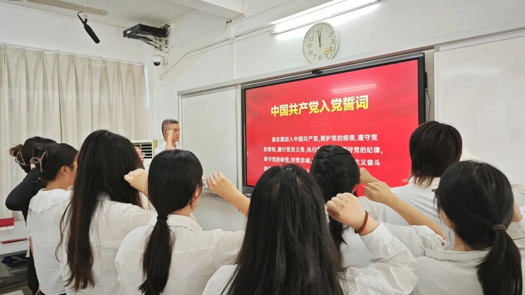 吴椿同志带领全体党员一起重温入党誓词。全体同志高举右拳,全神贯注,一句句誓言铿锵有力,彰显着对党的绝对忠诚。毕业生党员们将永葆初心,坚守使命,在新的领域里赓续奋斗。