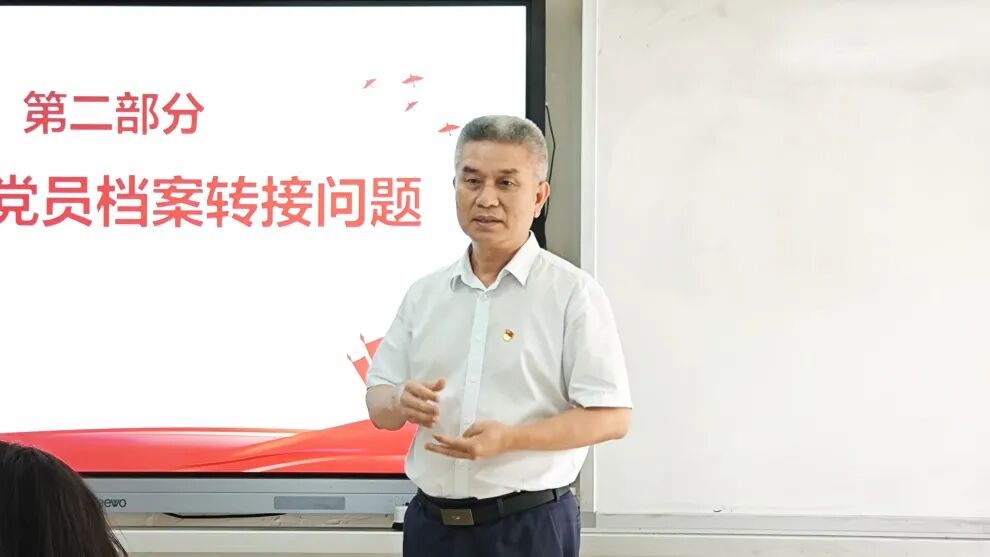 吴椿同志还就毕业生党员档案转接问题进行了说明。他主要讲解了毕业生党员组织关系转出的具体流程、注意事项,并针对以往工作过程中遇到的特殊情况和存在的问题作了解释和说明。同时,他向毕业生党员们强调了党组织关系转接的重要性,嘱咐同学们要积极与学院老师沟通联系,及时解决关系转接中遇到的问题。