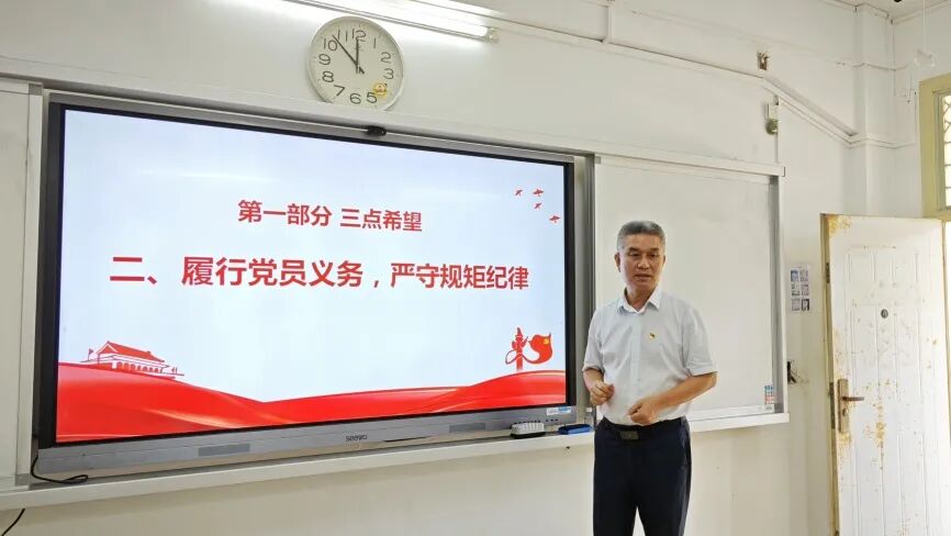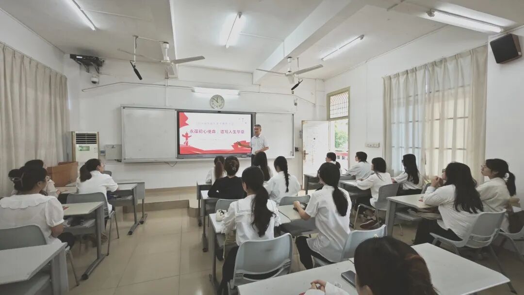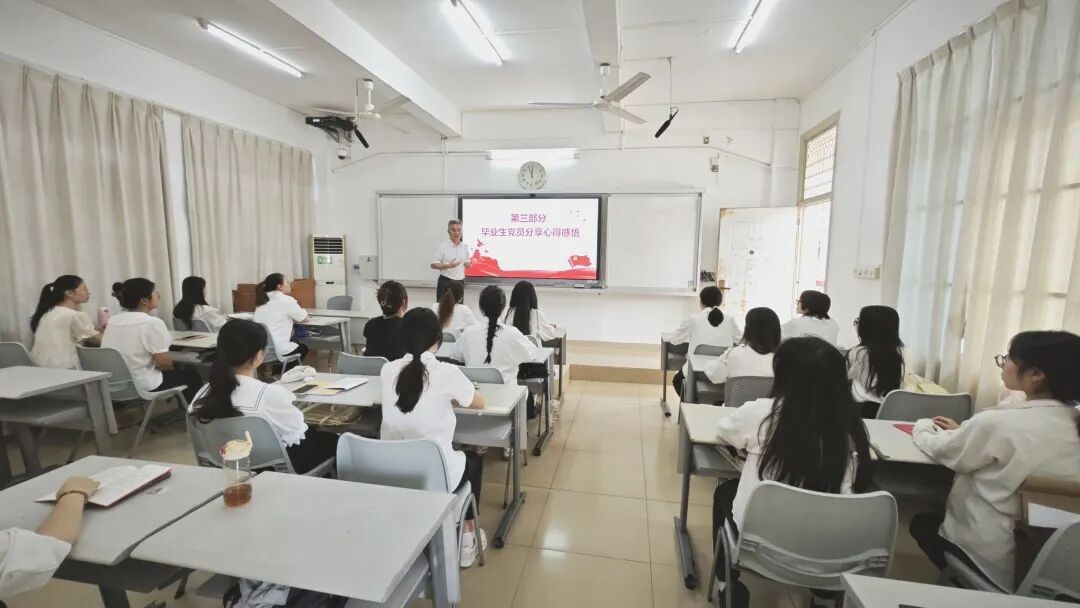 为推进党纪学习教育走深走实,进一步加强毕业生党员教育管理,坚定毕业生党员的理想信念、强化党员意识,激励他们在新的人生起点上继续发挥共产党员的先锋模范作用,海南师范大学国际教育学院学生党支部于2024年6月11日召开以“永葆初心使命,谱写人生华章”为主题的2024届毕业生党员教育大会。学院党委副书记兼学生党支部书记吴椿同志主持会议并给毕业生党员上了“最后一堂课”。